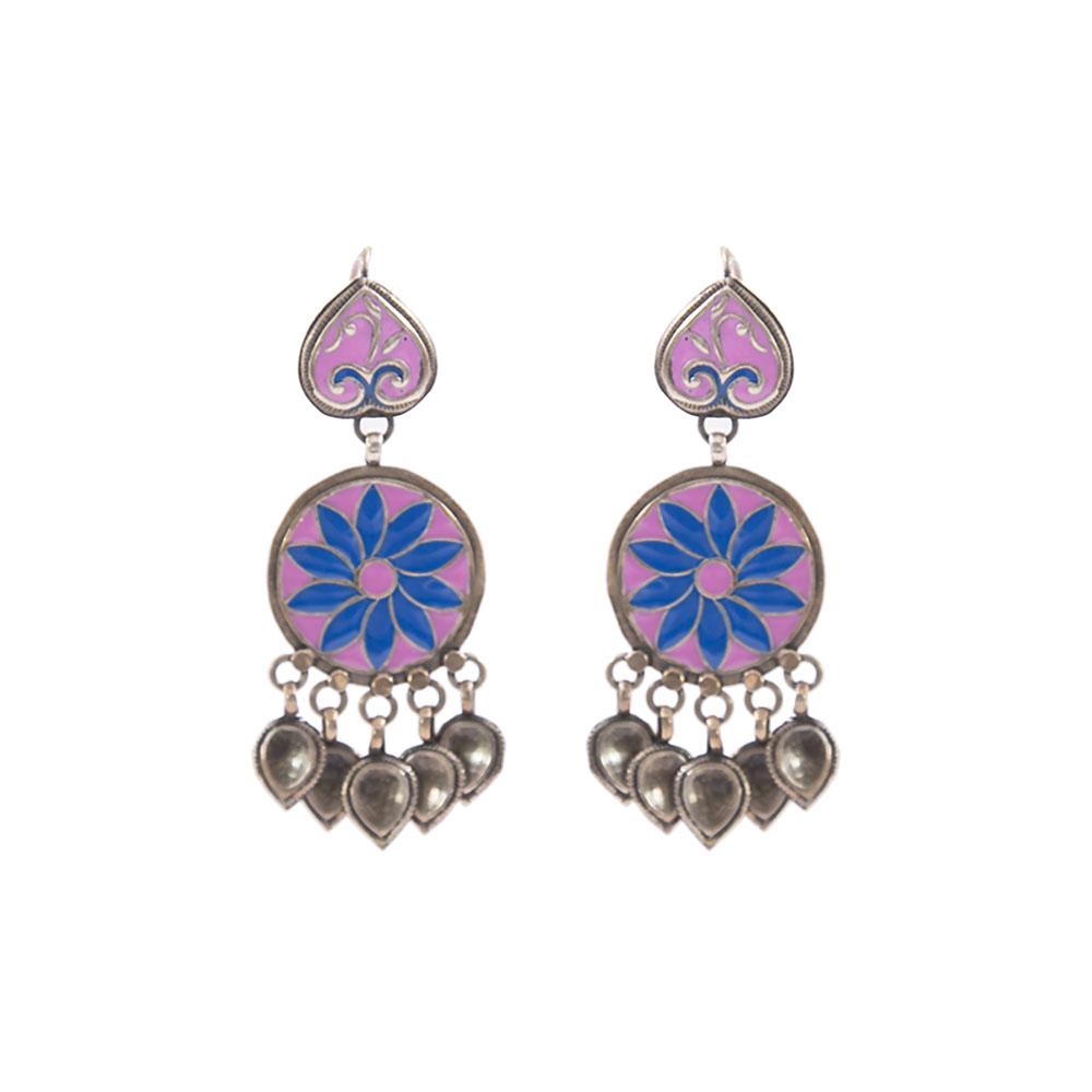 Floral pattern studded with Pink - Blue shaded Minakari Painting work.